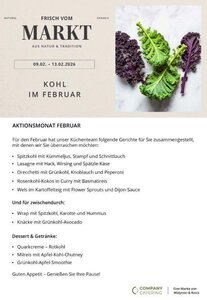 Zum digitalen Speiseplan des Anbieters mit allen Angaben zu Nährwerten der Gerichte (pro Portion), Allergenen und Zusatzstoffen.