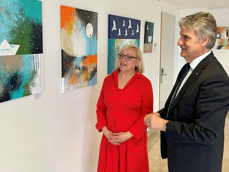 „Die Bilder von Patricia Simon bestechen auf den ersten Blick durch viel Phantasie und Lebensfreude. Sie ziehen den Betrachter sofort in ihren Bann und übertragen unmittelbar die Freude, die die Künstlerin beim Malen ihrer Werke hat“, sagte Hamelow während der Vernissage. „Besucherinnen und Besucher wie auch die Mitarbeiterinnen und Mitarbeiter unserer Kreisverwaltung können sich über diese Ausstellung ganz besonders freuen. Denn sie werden in den kommenden Wochen dank der lebensfrohen Bilder stets mit einem Lächeln über den Verwaltungsflur laufen.“