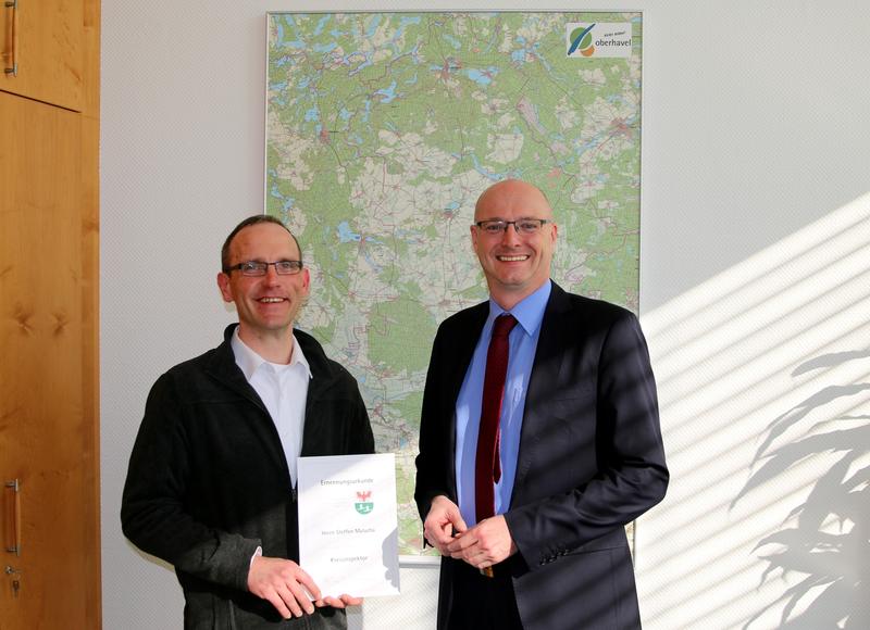 Mit der Übergabe der Bestellungsurkunde an Steffen Malucha zum Kreisbrandmeister am Montag, dem 10.04.2017, ist die Führungsspitze der Feuerwehr im Landkreis Oberhavel wieder komplett. Sein Amtsvorgänger Frank Kliem hatte im Mai des vergangenen Jahres um die Entlassung aus dem Ehrenbeamtenverhältnis gebeten.