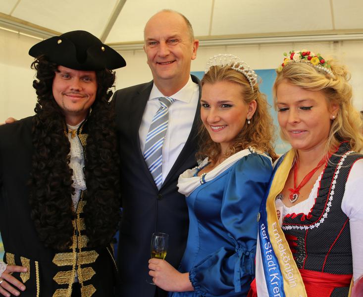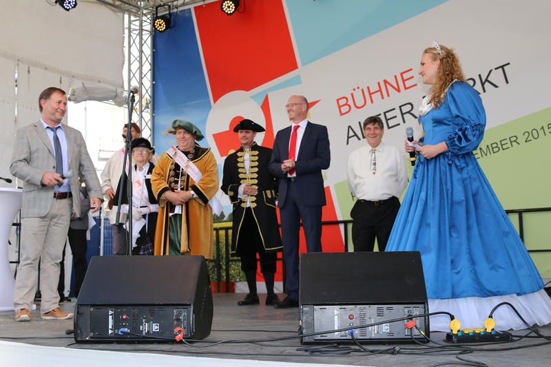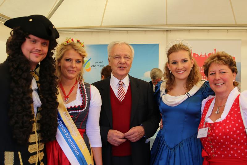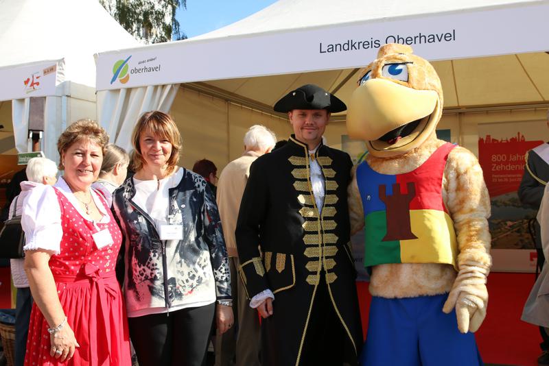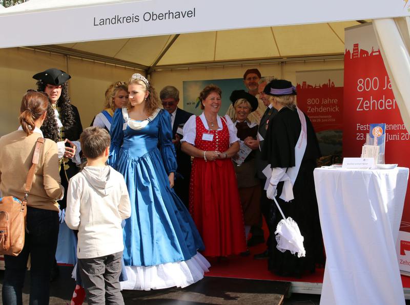 Dabei hatte sich der Landkreis drei 800-Jährige mit ins Boot geholt - nämlich die Städte Kremmen, Oranienburg und Zehdenick. Sie feiern im kommenden Jahr ihre 800-jährigen Jubiläen. Auch Landrat Ludger Weskamp, die Bürgermeister Klaus-Jürgen Sasse und Arno Dahlenburg, Kurfürstin Louise Henriette von Oranien, Otto Freiherr von Schwerin, die Kremmener Erntekönigin Diana, die Zehdenicker Botschafter und das Maskottchen Falko der TURM ErlebnisCity Oranienburg mischten sich unters Volk.