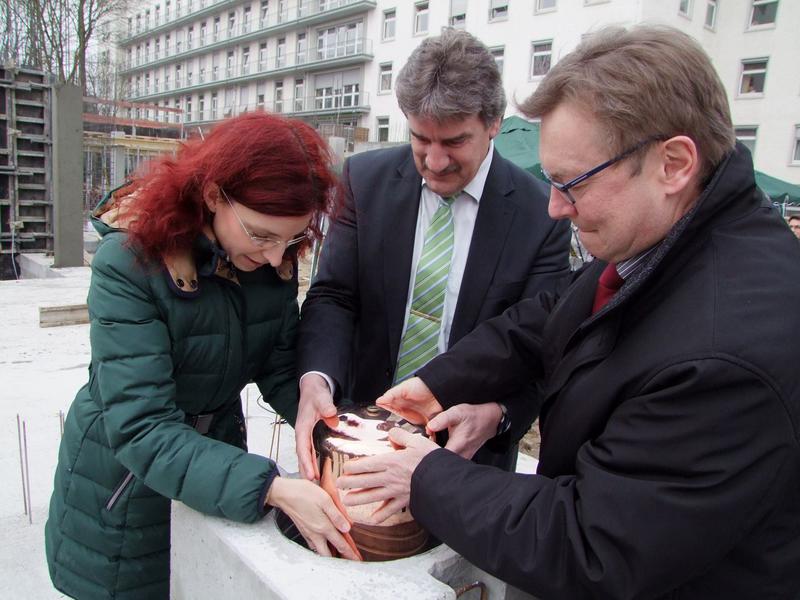 Am Dienstag, dem 10.03.2015, haben die Oberhavel Kliniken den Grundstein für den neuen Bettenhausflügel in der Klinik Hennigsdorf gelegt. Unter den Gästen befanden sich die Ministerin für Arbeit, Soziales, Gesundheit, Frauen und Familie des Landes Brandenburg, Diana Golze, der Erste Beigeordnete des Landkreises Oberhavel, Egmont Hamelow, der Aufsichtsratsvorsitzende der Oberhavel Kliniken GmbH und Dezernent für Gesundheit und Soziales des Landkreises Oberhavel, Michael Garske, sowie Hennigsdorfs Bürgermeister, Andreas Schulz.