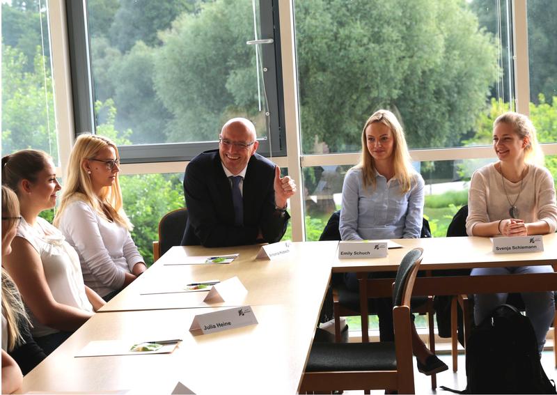 Elf Auszubildende und drei Studentinnen verstärken ab sofort die Kreisverwaltung Oberhavel. Landrat Ludger Weskamp begrüßte am Freitag die jungen Frauen und Männer an ihrem künftigen Arbeitsplatz: „Mit dem Ausbildungsvertrag haben Sie eine wichtige Hürde auf Ihrem Weg zu einem erfolgreichen Berufsabschluss genommen. Nun gilt es, am Ball zu bleiben und die Möglichkeit zu nutzen“, so Weskamp. Er wies darauf hin, dass der Landkreis beste berufliche Perspektiven biete. „Wer mit entsprechenden Leistungen und nicht zuletzt mit einem guten Abschluss überzeugt, hat große Chancen, übernommen zu werden“, ergänzte der Landrat. Er betonte den Leitgedanken, der die Arbeit für die Bürgerinnen und Bürger Oberhavels prägen soll: „Sie sind ab jetzt Teil der Kreisverwaltung und tragen damit große Verantwortung. Nicht immer werden sich die Aufgaben einfach und ohne Konflikte bewältigen lassen. Doch bitte beherzigen Sie, dass ein verständnisvoller und offener Umgang die Voraussetzung für eine bürgerfreundliche Verwaltung ist.“