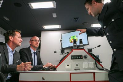 Auf der Grundlage der Katastrophenschutzverordnung des Landes Brandenburg ist ein ELW 1 in der Brandschutzeinheit vorzuhalten. Er bietet die Arbeitsmöglichkeit der Einheitsführung bei Großschadenslagen und Katastrophen. „Die Zusammenarbeit zwischen Landkreis und Kommunen ist eine Win-Win-Situation für alle und hat sich in den vergangenen Jahren bereits bewährt. Der Landkreis stellt die Technik, die örtlichen Feuerwehren dankenswerterweise das Personal. So kann die Feuerwehr Hohen Neuendorf unsere moderne Technik nutzen, aber bei Großschadenslagen ist ebenso gewährleistet, dass der Landkreis als Träger des Katastrophenschutzes auf das Personal und die Technik zurückgreifen kann, um schnell einsatzfähig zu sein“, erläuterte Landrat Ludger Weskamp.