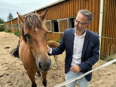 Oberhavels Wirtschaft ist vielfältig. Landrat Alexander Tönnies lernt die Menschen hinter den Kulissen der Unternehmen regelmäßig auf seinen „Landrat vor Ort“-Touren kennen. Im Löwenberger Land besuchte der Landrat den Hof Grüneberg. Dort gibt es barrierefreie Ferienwohnungen und behindertengerechte Freizeitmöglichkeiten.