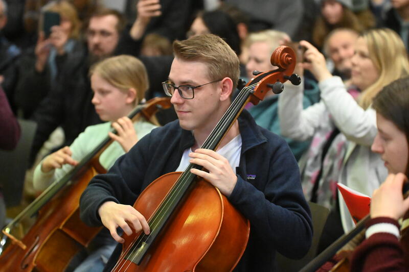 Das Konzert selbst steht ganz unter dem Motto „1001 Melodien“: Zu hören sind Werke von Klassik bis Pop, unter anderem von Vivaldi, Rossini und Schubert bis hin zu Melodien von Scott Joplin und Louis Armstrong. Dargeboten werden sie vom Celloensemble der Kreismusikschule, verschiedenen Kammermusikgruppen sowie Solistinnen und Solisten. Außerdem singt das VokalAnsemble.