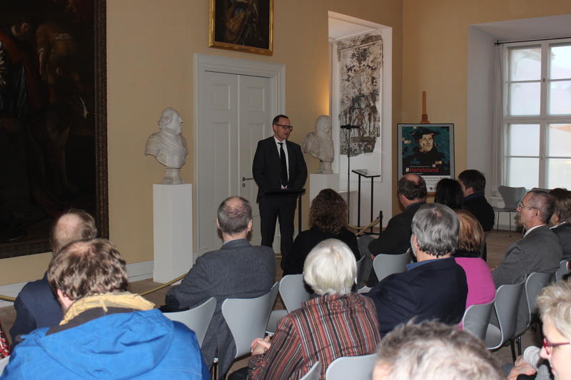 Matthias Rink, Dezernent für Soziales und Verkehr und zuständig für die kulturellen Einrichtungen des Landkreises, sagte in seiner Eröffnungsrede: "Ich freue mich, dass das Kreismuseum mit dieser Ausstellung einen ganz besonderen Beitrag zum Jubiläumsjahr der Reformation leistet und aufzeigt, welche Auswirkungen die Ideen Martin Luthers in unserer Region hatten und bis heute haben." Pfarrer Thomas Triebler aus Kremmen, einer der Leihgeber wertvoller Exponate, hielt die Laudatio. Musikalisch begleitet wurde die Veranstaltung von Sarah Kaiser mit Songs aus ihrem neuen Album "Freiheit. Auf den Spuren Martin Luthers".