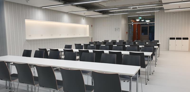 Die Cafeteria ist 110 m² groß, bietet 48 Sitz- und zusätzliche Stehplätze. Auch die Cafeteria ist bereits mit Mobiliar ausgestattet. „Der Caterer ist schon umgezogen, so dass die Versorgung seit heute in der neuen, modernen Cafeteria stattfinden konnte“, sagt Bildungsdezernentin Kerstin Niendorf. Zur Ausstattung der neuen Küche gehören neben einer Ausgabestrecke natürlich der Kochbereich, eine Spülstrecke, das Warenlager und die Sozialräume für das Personal.