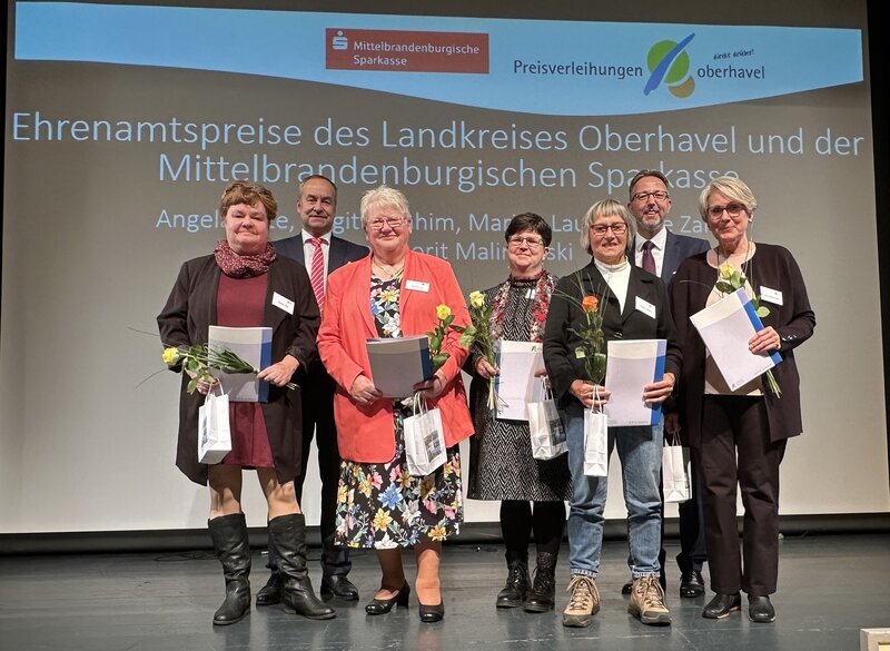 Proy sowie Klaus-Dieter Lieske und Erika Franke (Amt Gransee und Gemeinden), die Hennigsdorfer Ortsgruppe der Deutschen Lebens-Rettungs-Gesellschaft um Gritt Nollen sowie Brigitte Rahim (Gemeinde Birkenwerder), Dag Tjaden (Stadt Hohen Neuendorf), Dorit Malinowski (Stadt Kremmen) und Candy Boldt-Händel (Stadt Oranienburg). Auf Vorschlag des Landrates wurden André Stöwe für sein Engagement für die Jugend des Kreisanglerverbandes und Bolko Prußok für seine jahrzehntelangen Verdienste um den Verein Lebenshilfe für Menschen mit geistiger Behinderung mit dem Ehrenamtspreis ausgezeichnet. Nachträglich werden zudem Ulrike Fauck (auf Vorschlag des Landrates), Ann Kathryn Hoffmeister (Gemeinde Oberkrämer) und Heinrich Semle (Stadt Zehdenick), die an der Preisverleihung nicht teilnehmen konnten, für ihr ehrenamtliches Engagement gewürdigt.