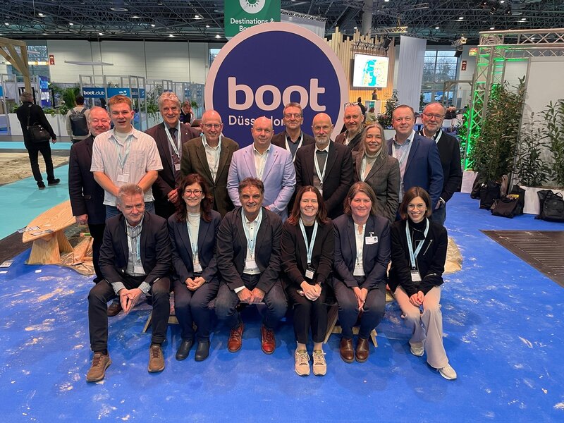 Delegation der Wassertourismus Initiative Nordbrandenburg stellt Familienmarke Seenplatte auf der Leitmesse boot in Düsseldorf vor / Elektromobilität auf dem Wasser wird 2026 in Oberhavel Realität