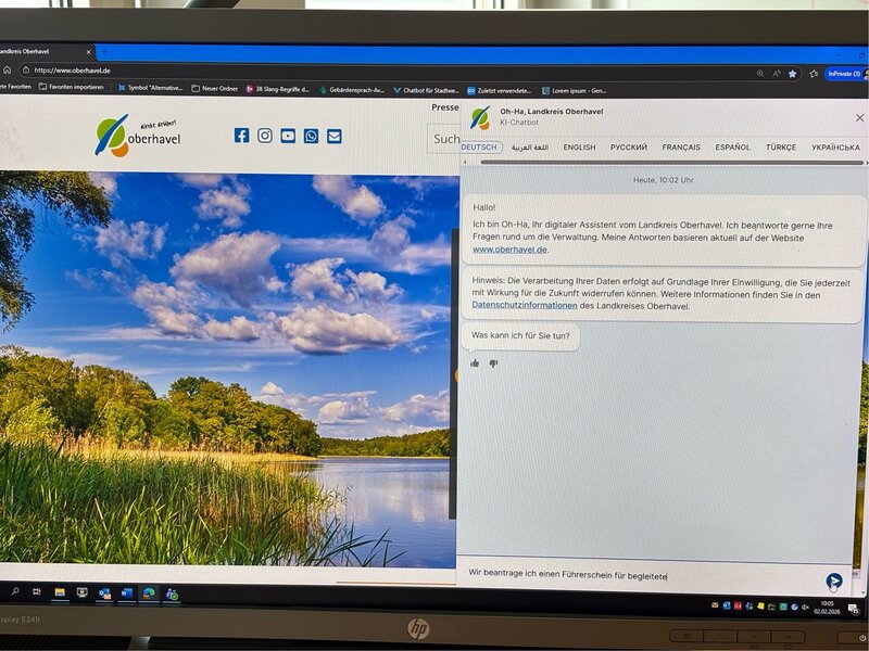 Auf der Webseite des Landkreises Oberhavel müssen sich Nutzerinnen und Nutzer jetzt nicht mehr selbst durch die Themenfelder klicken. Die Suche übernimmt ab sofort „OH-Ha“, der KI-Chatbot der Kreisverwaltung. Er beantwortet Fragen zu Angeboten, Dienstleistungen und Informationen des Landkreises. Der Chatbot greift dabei ausschließlich auf die Inhalte der Webseite www.oberhavel.de zu. Aufgabe des Chatbot ist es, schnell und verständlich weiterzuhelfen – und das neben der deutschen in sieben weiteren Sprachen. „OH-Ha“ beherrscht Englisch, Russisch, Ukrainisch, Französisch, Spanisch, Arabisch und Türkisch.