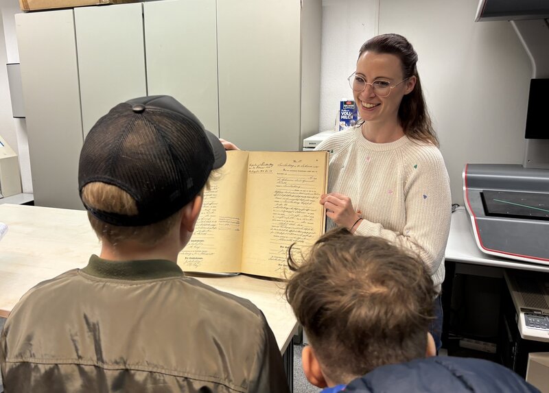 Vermessung, Archiv und Digitalisierung – beim Zukunftstag am 23.04.2026 bekamen Jugendliche die Gelegenheit, einen Blick in verschiedene Bereiche der Kreisverwaltung Oberhavel zu werfen. Landrat Alexander Tönnies gab den Jungen und Mädchen einen kurzen Überblick über die Arbeit der Behörde. Sie warfen einen Blick in alte Urkunden und probierten Vermessungsequipment aus. Nebenbei gab es die Möglichkeit, mit Auszubildenden und Beschäftigten der Verwaltung ins Gespräch zu kommen. Schülerinnen und Schüler erfuhren auch, welche Ausbildungs- und Studienmöglichkeiten der Landkreis bietet und wie man sich am besten bewirbt.