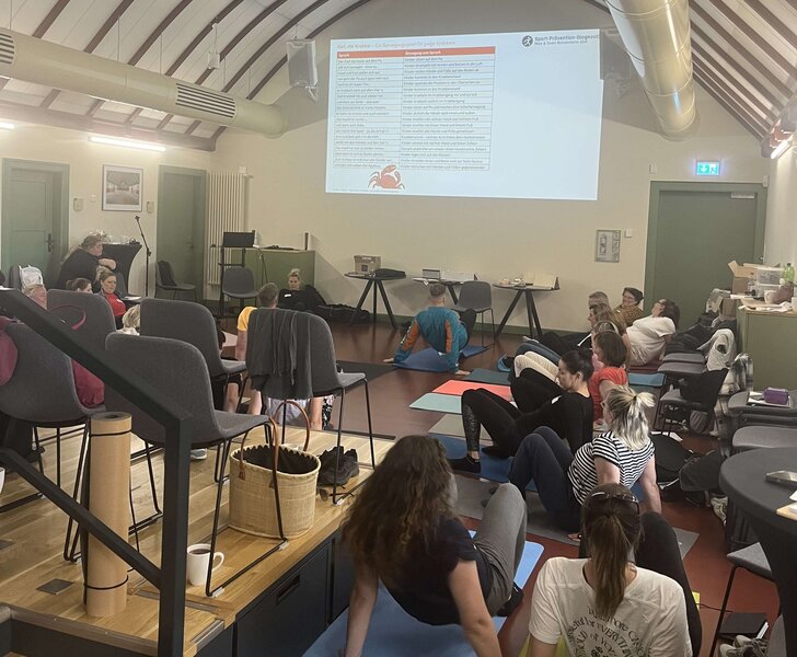 Am 23. und 24.05.2024 fand im Zuge des Projektes „Gesund aufwachsen im Landkreis Oberhavel“ unter der fachkundigen Leitung des Diplom-Sportwissenschaftlers Sven Bresemann der Workshop: „Zurück zu den Wurzeln – Warum das Nachholen frühkindlicher Meilensteine wichtig ist“ statt. Während der zwei spannenden und sehr lehrreichen Schulungstage erfuhren die Kita-Fachkräfte aus dem gesamten Landkreis die neurophysiologischen Hintergründe der kindlichen Entwicklung. Die Veranstaltung bot nicht nur theoretisches Wissen, sondern vor allem praxisnahe Einblicke und konkrete Methoden zur Unterstützung physiologischer Haltungs- und Bewegungsmuster.
