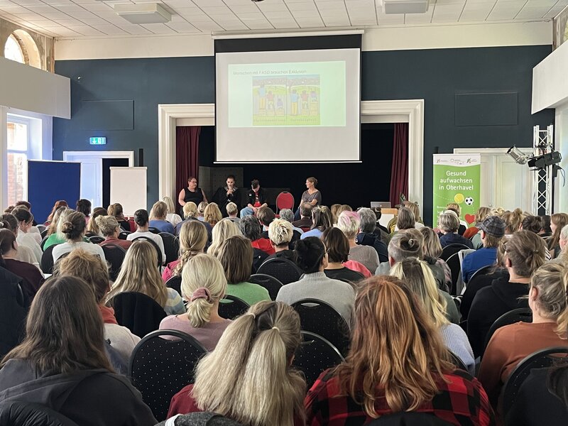 Anlässlich des internationalen Tages des alkoholgeschädigten Kindes am 09.09.2024 fand am 18.09.2024 zum zweiten Mal die FASD-Expertenveranstaltung im Kreistagssaal des Landkreises Oberhavel statt. Bereits im Vorjahr hatte die Veranstaltung große Resonanz erfahren. Auch dieses Jahr nahmen rund 120 Fachkräfte teil, darunter (sozial-)pädagogische Fachkräfte, Lehrkräfte, Sonderpädagoginnen und Sonderpädagogen, Psychologinnen und Psychologen, Erziehungspersonal, Auszubildende, Studierende und andere Interessierte, die beruflich, als Pflegeeltern oder Adoptiveltern Kinder, Jugendliche und Erwachsene mit FASD betreuen.